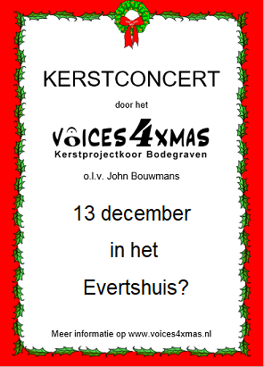 Komt er een 6e editie van het Voices4Xmas Kerstconcert? Dat is op dit moment nog onzeker, want Lucienne de Valk heeft aangegeven